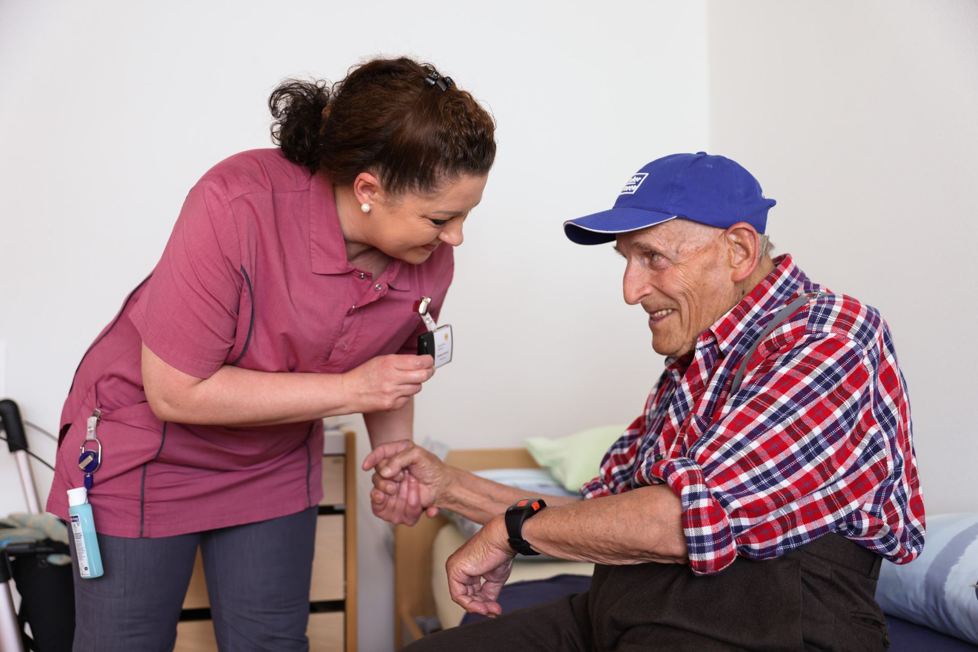 Asukkaamme aiheuttaa asukashälytyksen, mutta myös sängystä poistumisen hälytyksen kosketusmatolla tai toisella anturilla, kuten Qumea. Kun hoitohenkilökunta saapuu, heidän tarvitsee vain peruuttaa henkilökohtaisella tunnisteellaan asukkaan pääbadgen. Tällä tavoin kaikki hälytykset peruutetaan suoraan. Huomaa, että hän voi edelleen peruuttaa anturin yksilöllisesti tarvittaessa (esim. kosketusmatto, liiketunnistin jne.).